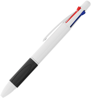 The Quad is a classic 4 colour pen that boasts blue, red, green and black ballpoints in the 1 model. Each colour option reveals and retracts via the click sliders at the top of the pen. The comfortable thermoplastic rubber grip is available in a variety of colours to complement your brand style. The exterior white shell can be Photo Printed with your logo, slogan and more.